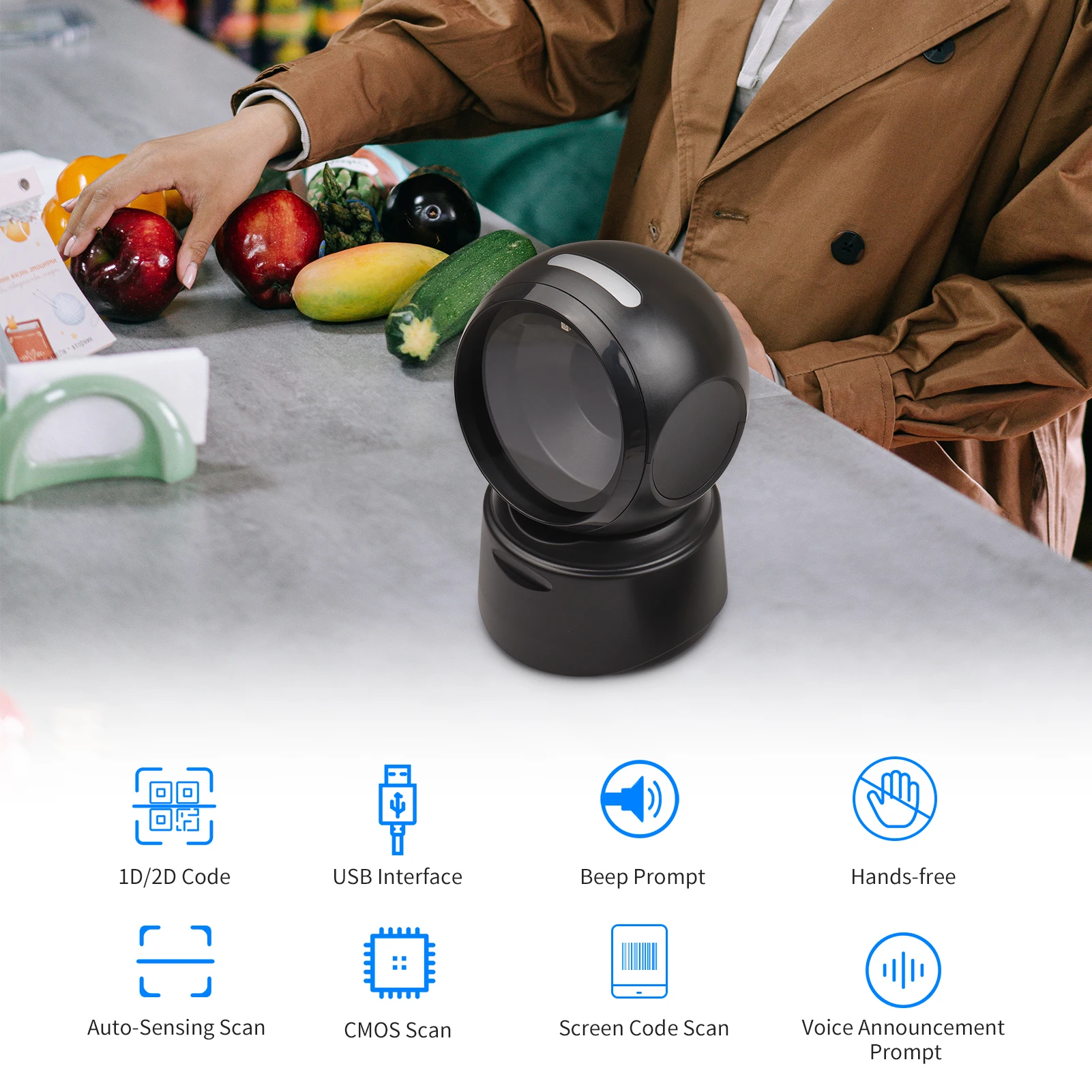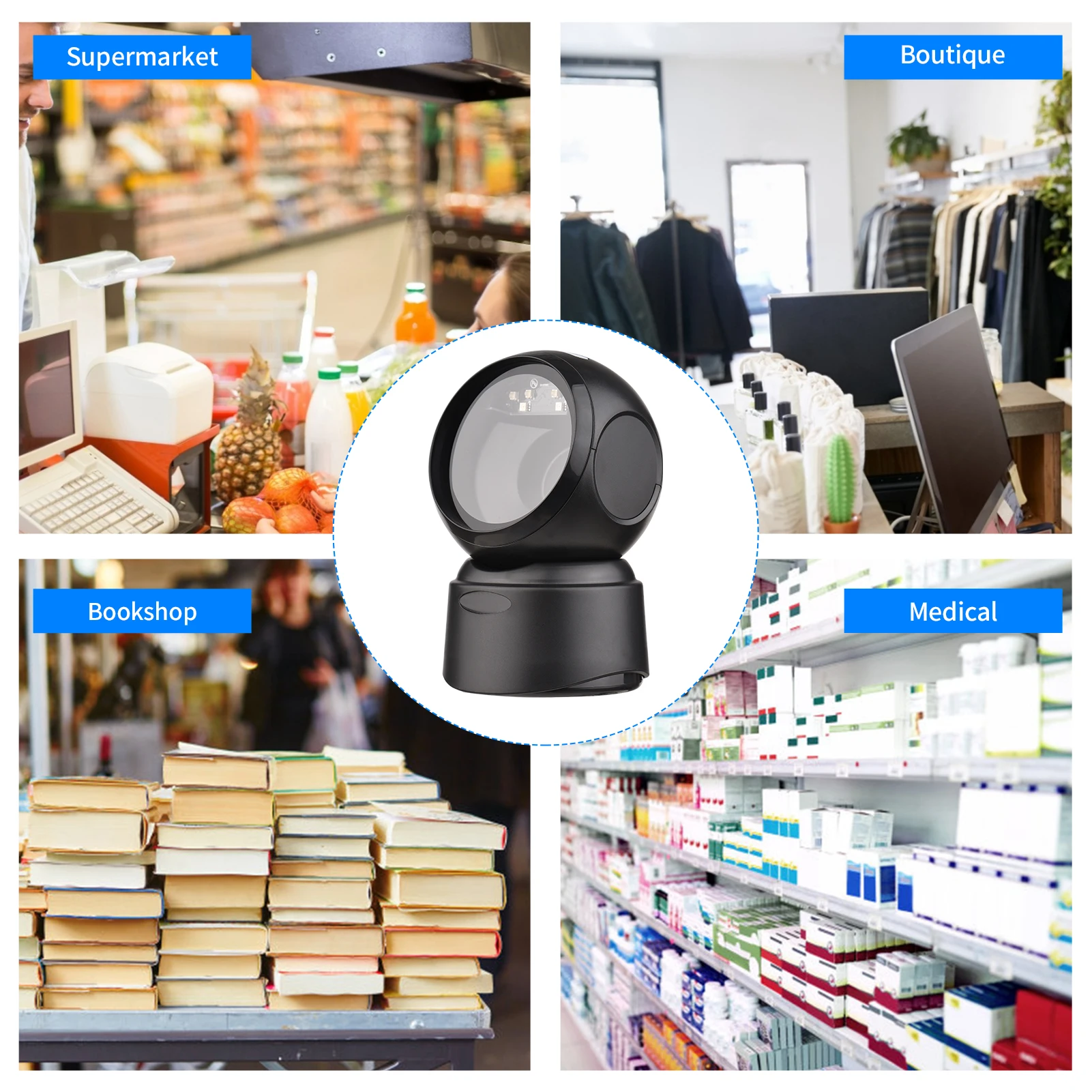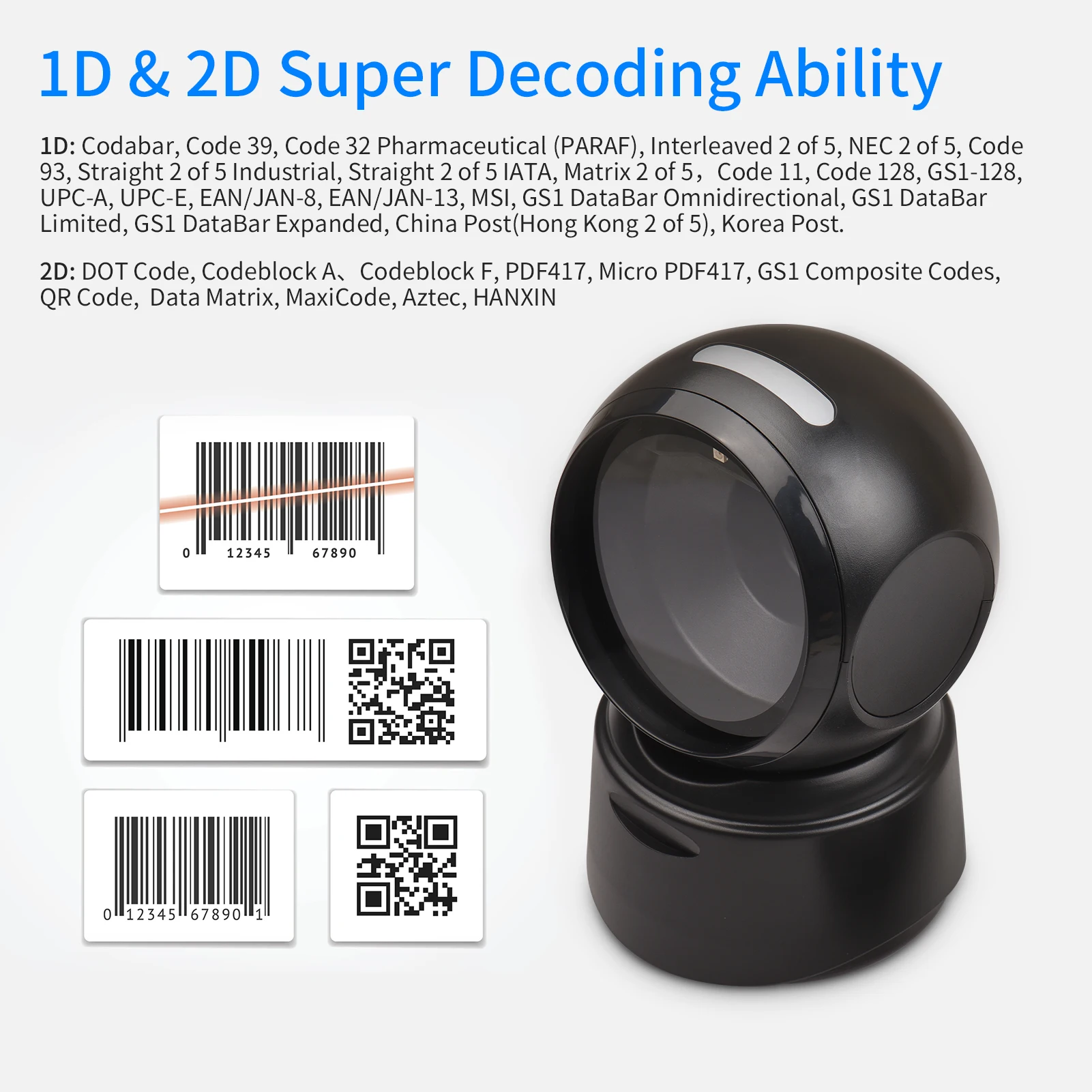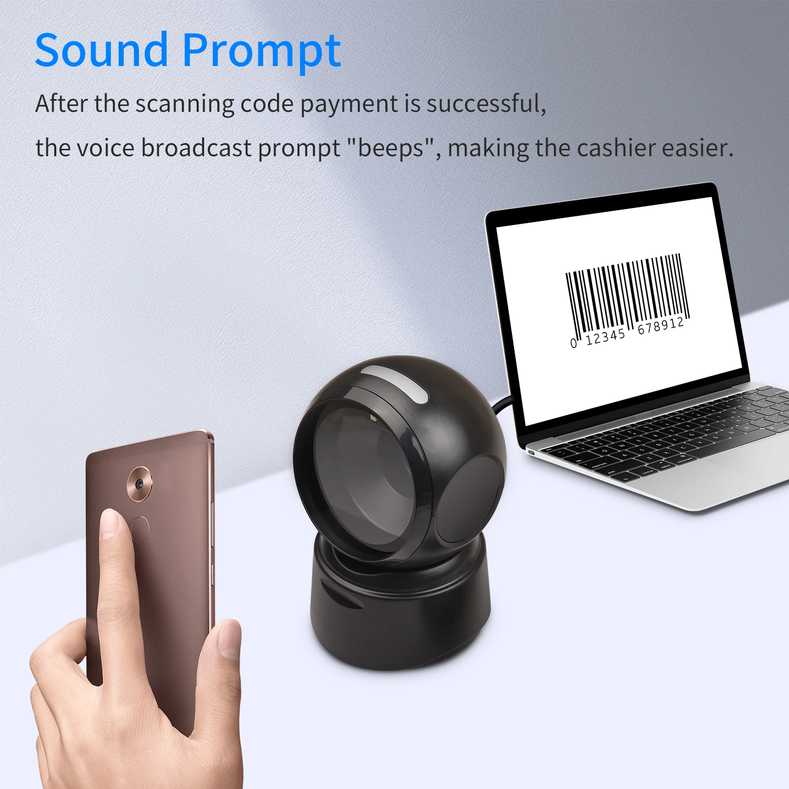 ▶ Portable desktop hands-free design, improve the working efficiency. Super fast and sensitive decoding speed, make the mobile payment more easily.