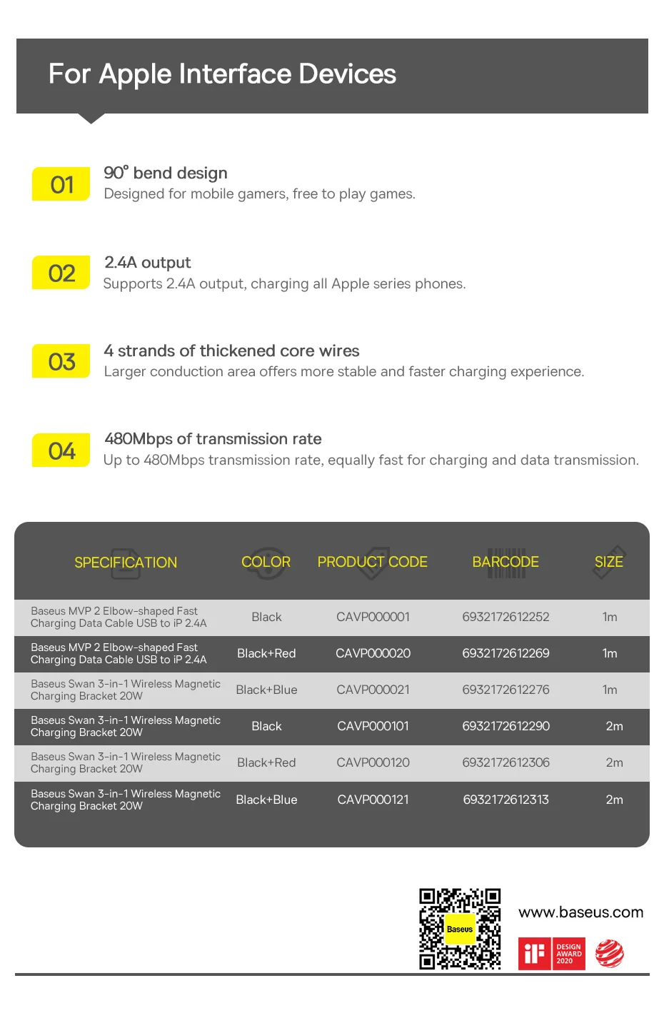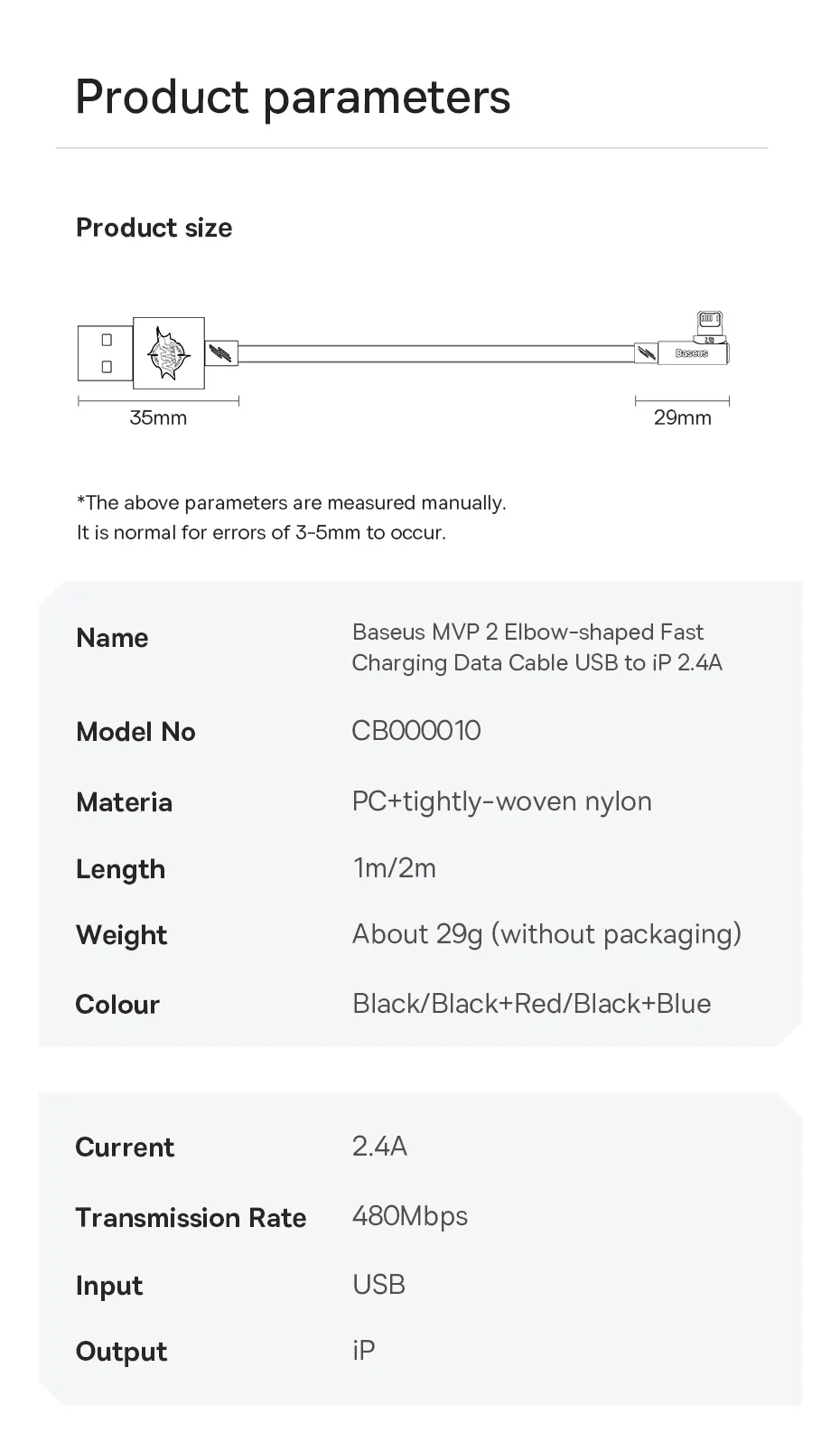 Baseus 2.4A USB to iP MVP 2 Elbow-shaped Fast Charging Data Cable