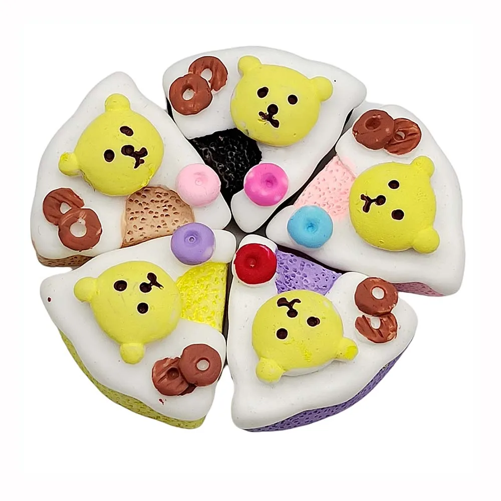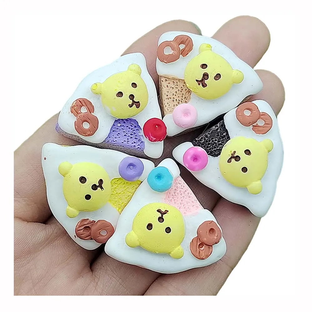 Cheap Price Resin Cartoon Animal Bear Pizza Flatback Resin Cabochons Miniature Dollhouse Food For Scrapbooking Hair Clip Decor