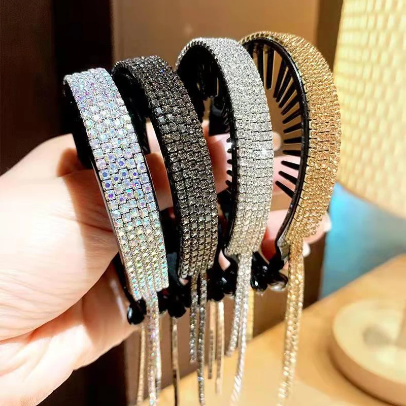 Роскошные Стразы ободки, блестящие ободки для волос, держатель для хвоста, головные уборы для женщин, аксессуары для волос, ювелирные изделия, зажим петли для волос