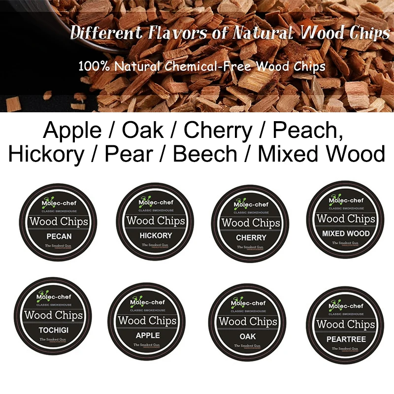 🍸8 ароматов древесных чипсов: чипы из натурального дерева сушены на воздухе для достижения идеальной концентрации дыма после зажигания и обеспечения самого подлинного чистого копченого вкуса.