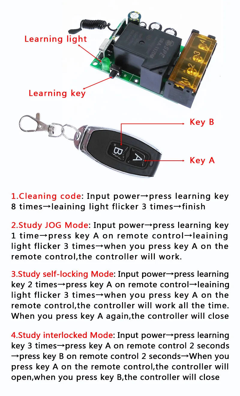 1. Этот пульт дистанционного управленияEV1527 Код обученияТип (тип кода исследования), но не тип копирования.433 МГц2. Иногда нажатие кнопок во время транспортировки приводит к тому, что аккумуляторВыход из строя. Дорогой покупатель, если вы получили пульт дистанционного управленияНе загорается, Пожалуйста, замените аккумулятор. С встроенным wi-2 шт. 3В CR2016.3. Этот продукт не имеет никакого руководства по эксплуатации, но вам нужно руководство по эксплуатации для вашего устройства. Устройство должно поддерживать обучающий код EV1527 и поддерживать 433 МГц одновременно. Это означает, что вам необходимо обратиться к Руководству по продукту вашего собственного устройства для кодирования после покупки (различные продукты имеют различные методы кодирования). Поэтому перед покупкой, пожалуйста, подтвердите, подходит ли ваше устройство для нашего пульта дистанционного управления.