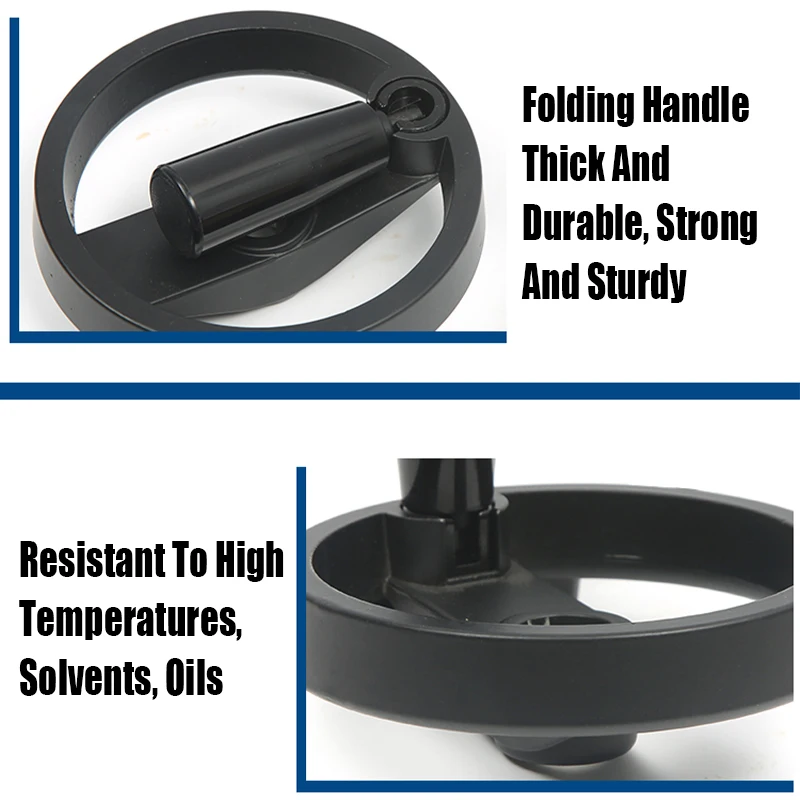 Особенности:Полные характеристики, складная ручка, толстая и прочная, прочная и прочная, высокая термостойкость, устойчивость к растворителям, маслостойкость, стандартное отверстие вала, полое маховико.