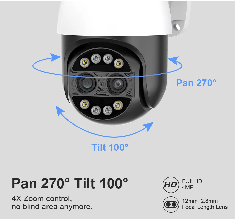 Поворачивается на 270 ° по горизонтали и на 100 ° по вертикали, вы можете управлять им в приложении ICSEE непосредственно, когда захотите и где бы вы ни находились.