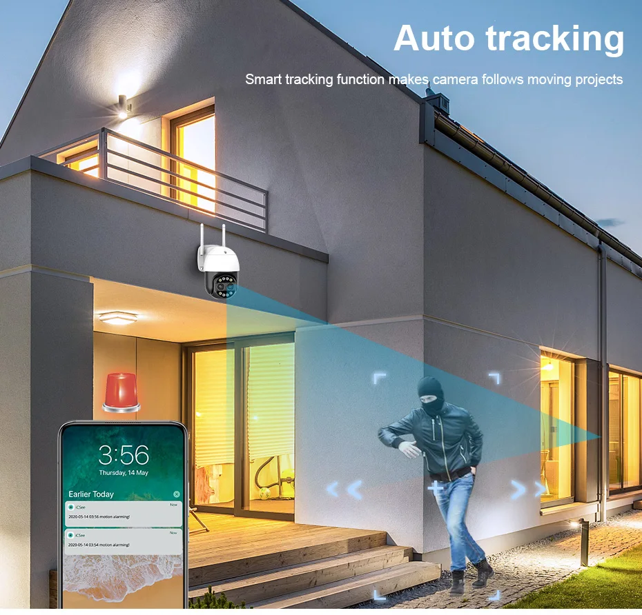 После блокировки цели камера автоматически регулирует вращение панорамирования, отслеживая движущиеся объекты, автомобили, домашних животных, людей и оповещая о них на ваш смартфон.