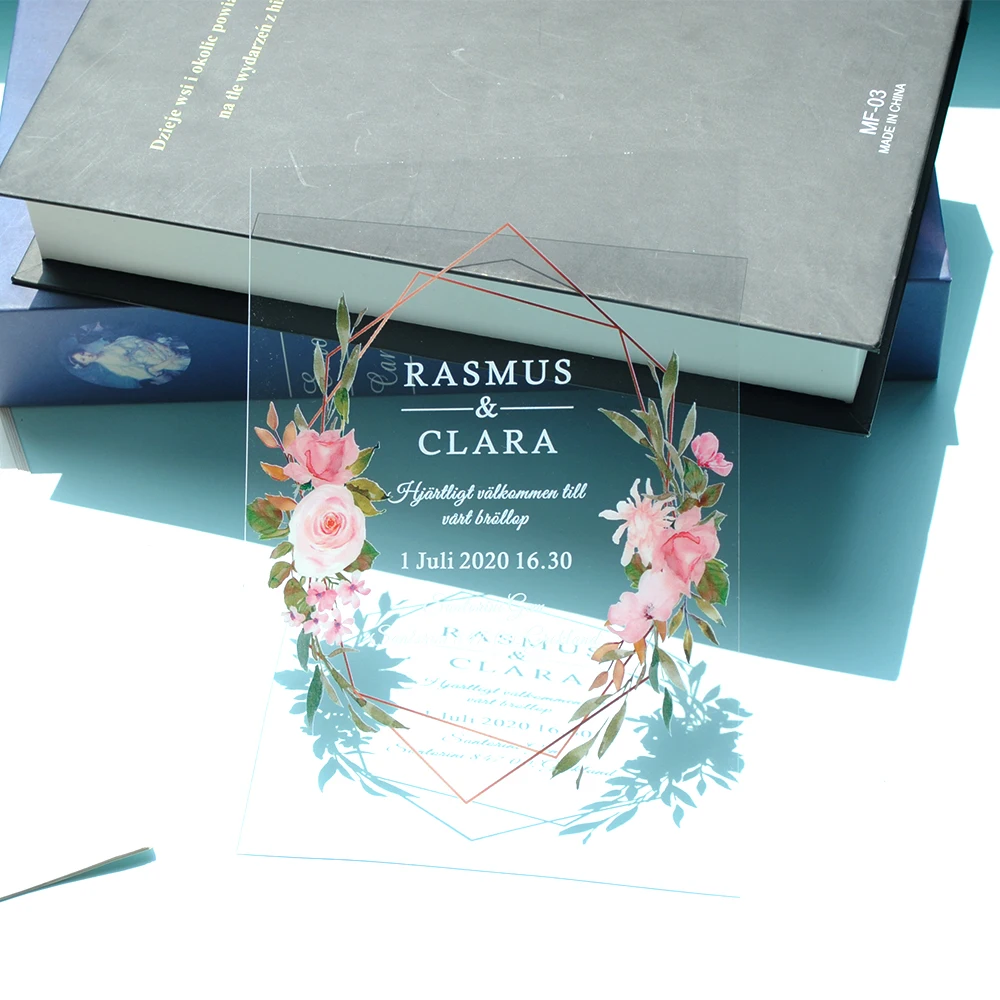 Новый дизайн пользовательских арабских прозрачных карт 10 шт элегантные тонкие ПВХ свадебные пригласительные открытки дешевая цена