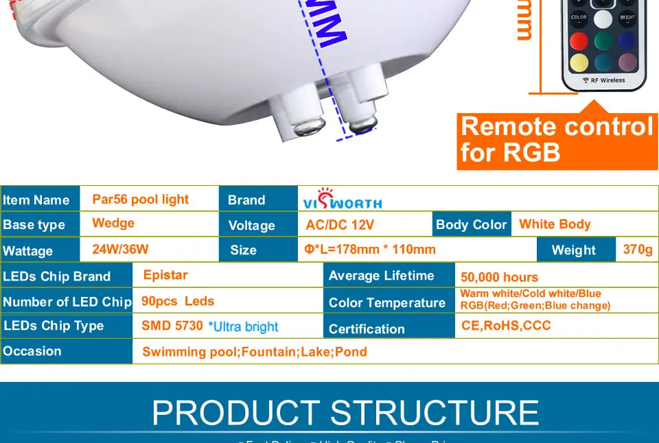 Светодиодный Тип: Par56 светодиодный подводный светильник