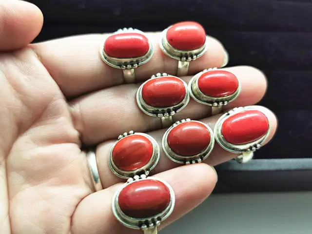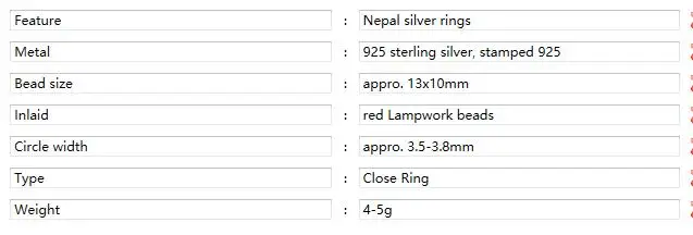 Handmade 925 Sterling Silver Inlaid Red Lampwork Beads Lovely Rings