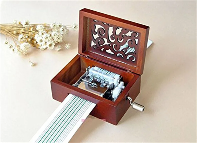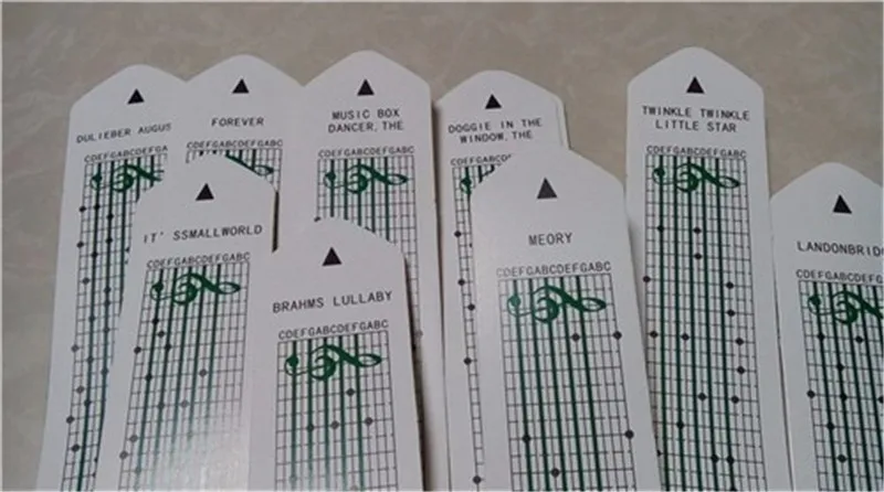 Напишите свою музыкальную ноту на бумажной ленте и используйте перфоратор, чтобы пробить отверстия. Затем поместите его в движение музыкальной коробки и перемешайте вал, затем он может сделать звук.