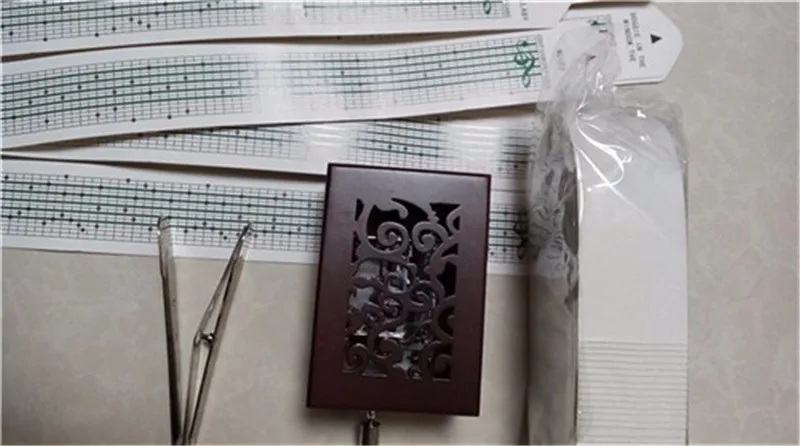 Напишите свою музыкальную ноту на бумажной ленте и используйте перфоратор, чтобы пробить отверстия. Затем поместите его в движение музыкального ящика и перемешайте вал, затем он может сделать звук.