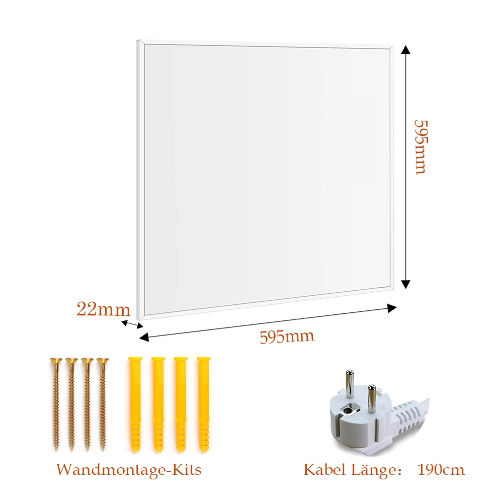 Мощность (Вт): 360 Вес изделия (кг): 4,1 Напряжение: 220-240 В 50 Гц Размер (мм): 595x595x22 ммс (ШxВxГ) Длина кабеля (м): 1,8 Стандарт Вилки: стандарт ЕС IP Рейтинг: IP44 Размер комнаты-современная изоляция (м²): 5,0 Размер комнаты-плохая изоляция (м²): 3,0