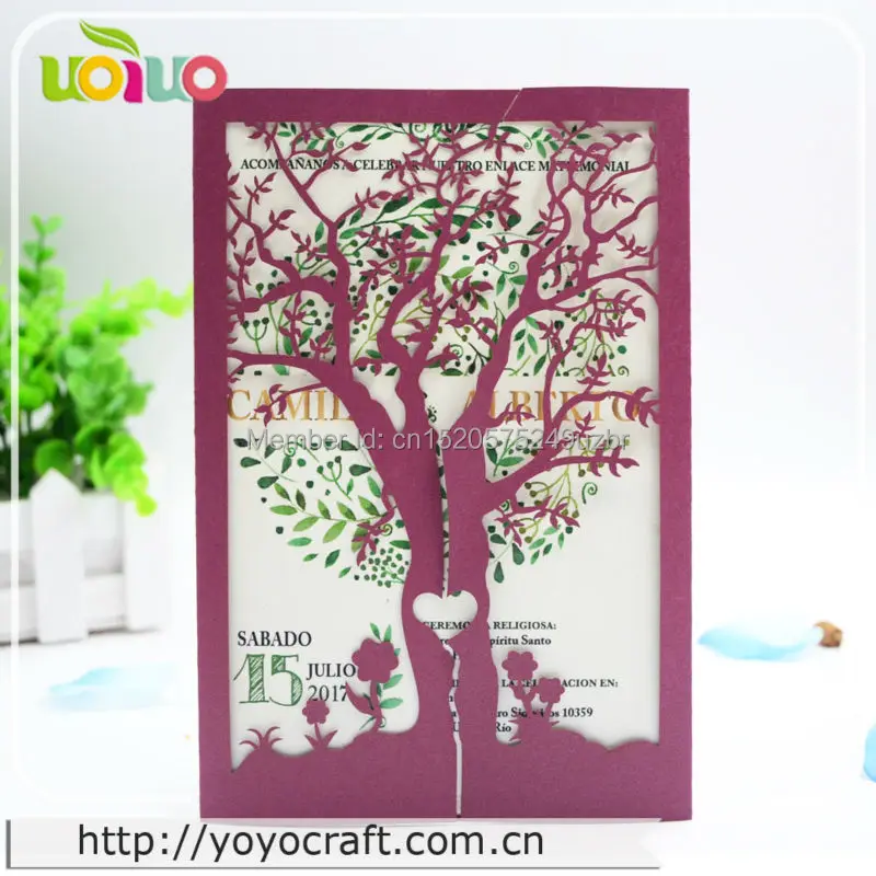 Элегантный горячий для США индивидуальный дизайн дерева на любом языке для печати лазерная резка Кружева свадебные приглашения дешевые китайские приглашения