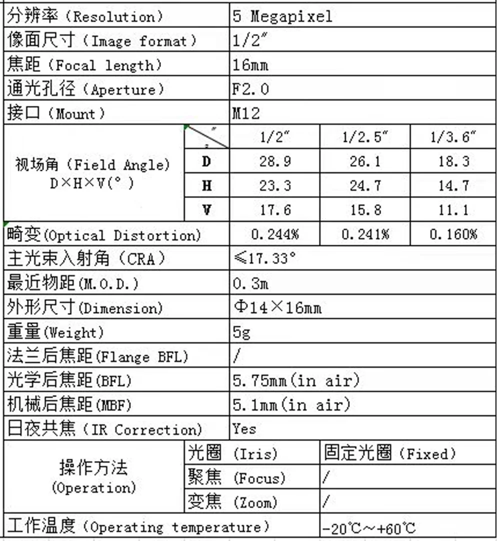 16 мм ручной фиксированный фокус M12 крепление объектива