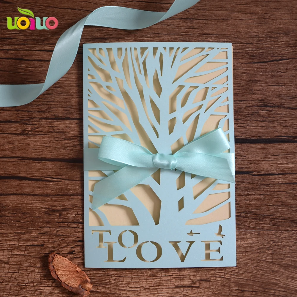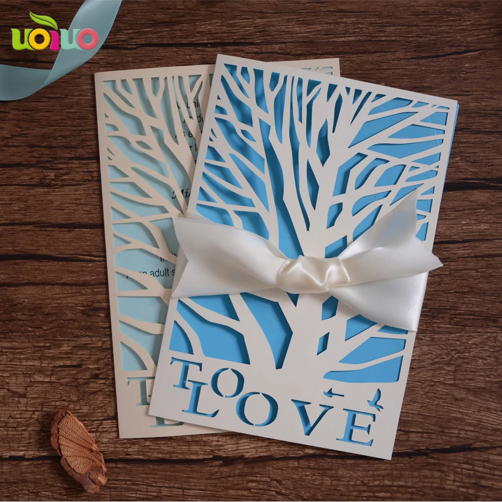 Бесплатный логотип слоновой кости и бежевый лазерная резка свадебные пригласительные открытки элегантные свадебные поздравительные открытки в форме дерева дизайн дешевых карт