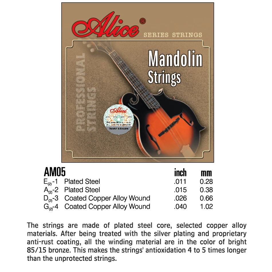 Алиса AM05 Струны для мандолины набор 0,011-0,040 покрытые медным сплавом покрытые сталью