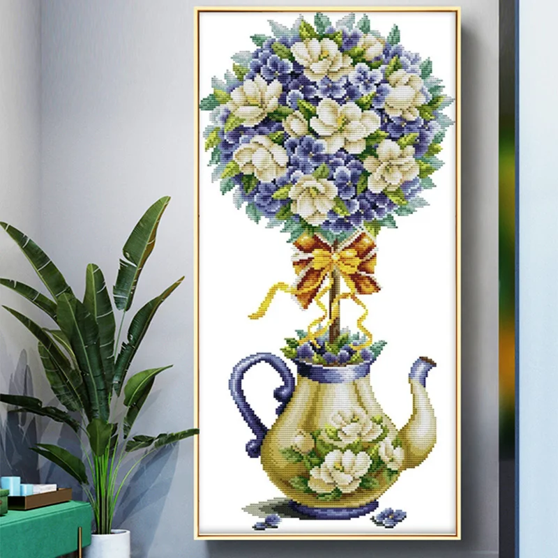 Чайник магнолии цветы картины напечатаны на канве DMC 11CT 14CT китайский крестиком наборы узоров вышивка рукоделие Наборы