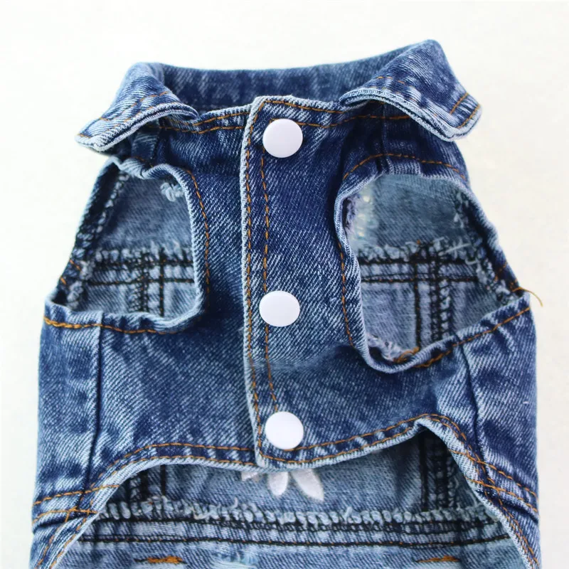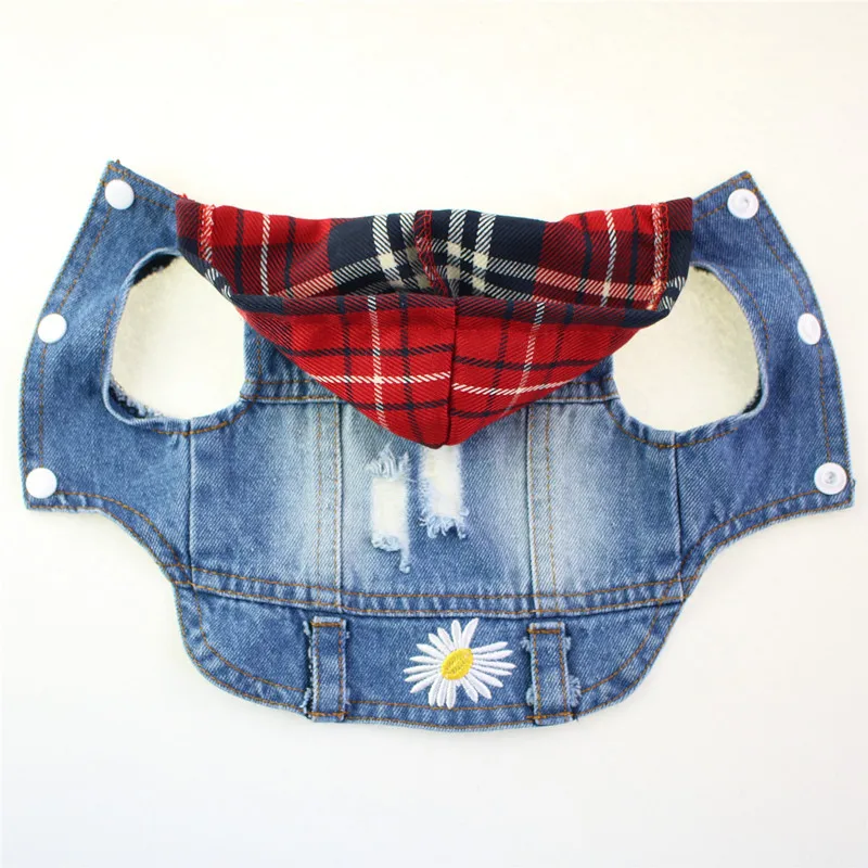 Джинсовый жилет для собак с изображением маргариток, щенков, кошек, куртка, одежда для маленьких собак, животных, джинсовое пальто с капюшоном, ковбойская Одежда для кошек 10E