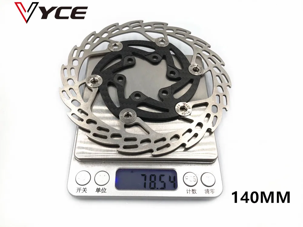 2 размера 140 мм/160 мм Подходит для горного mtb велосипеда/дискового дорожного велосипеда Размер и вес: 140 мм-79 г, 160 мм-90 г Материал: углеродное волокно и титановый винт (шесть титановых винтов в подарок для одного диска)