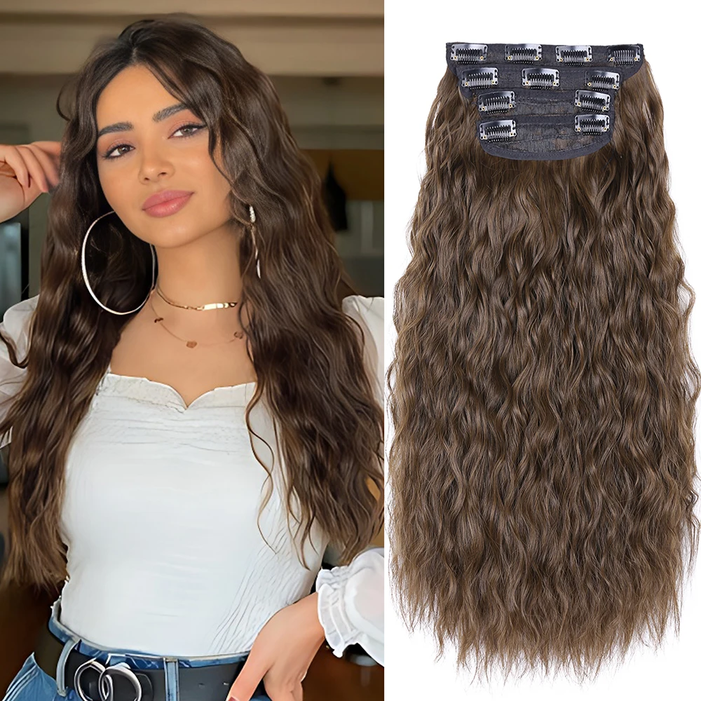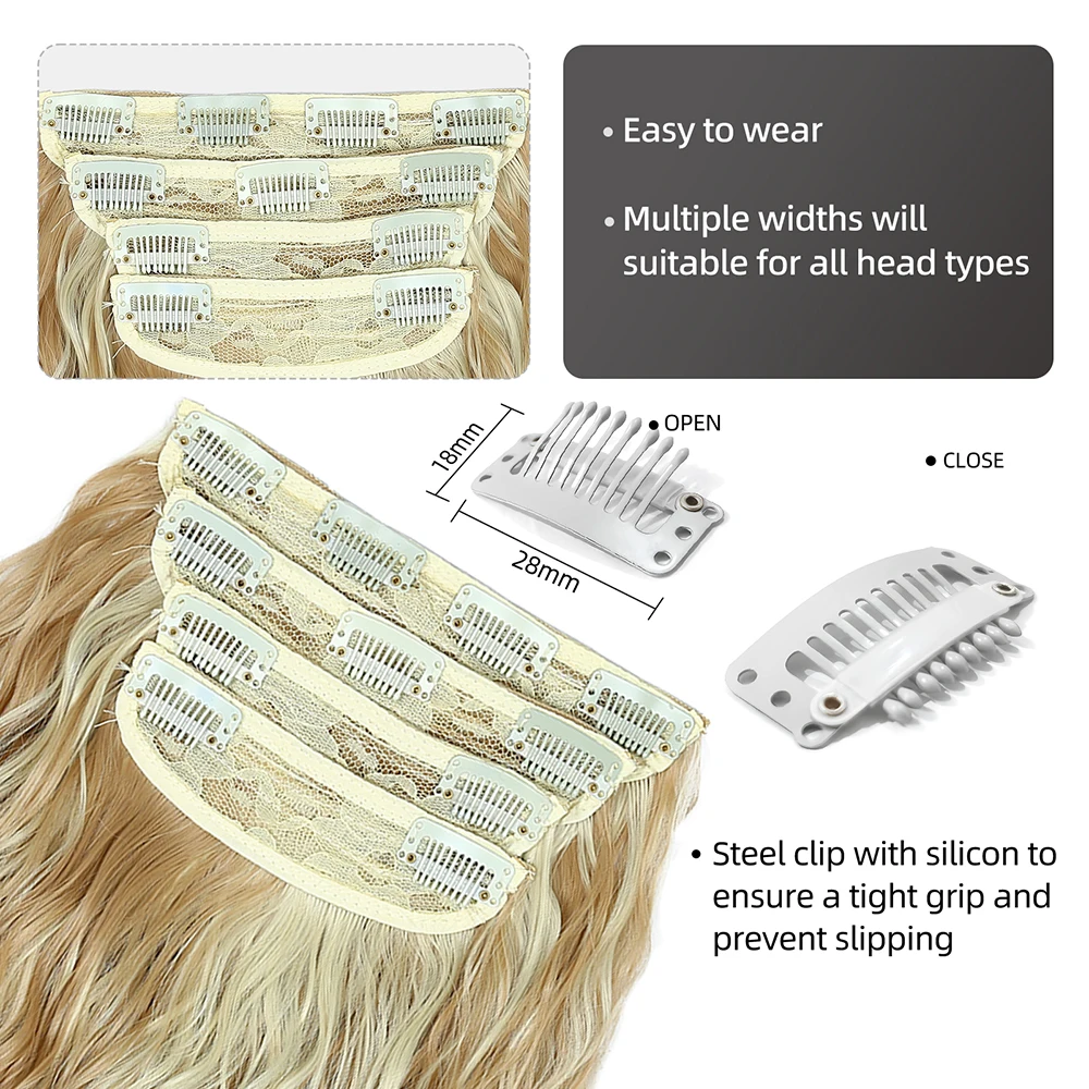 "Leeons 20Inch Synthetic Long Curly 11Clips Clip In Hair Extensions Body Wave Hairpiece Heat Resistant Fiber Ombre Blond Women "
