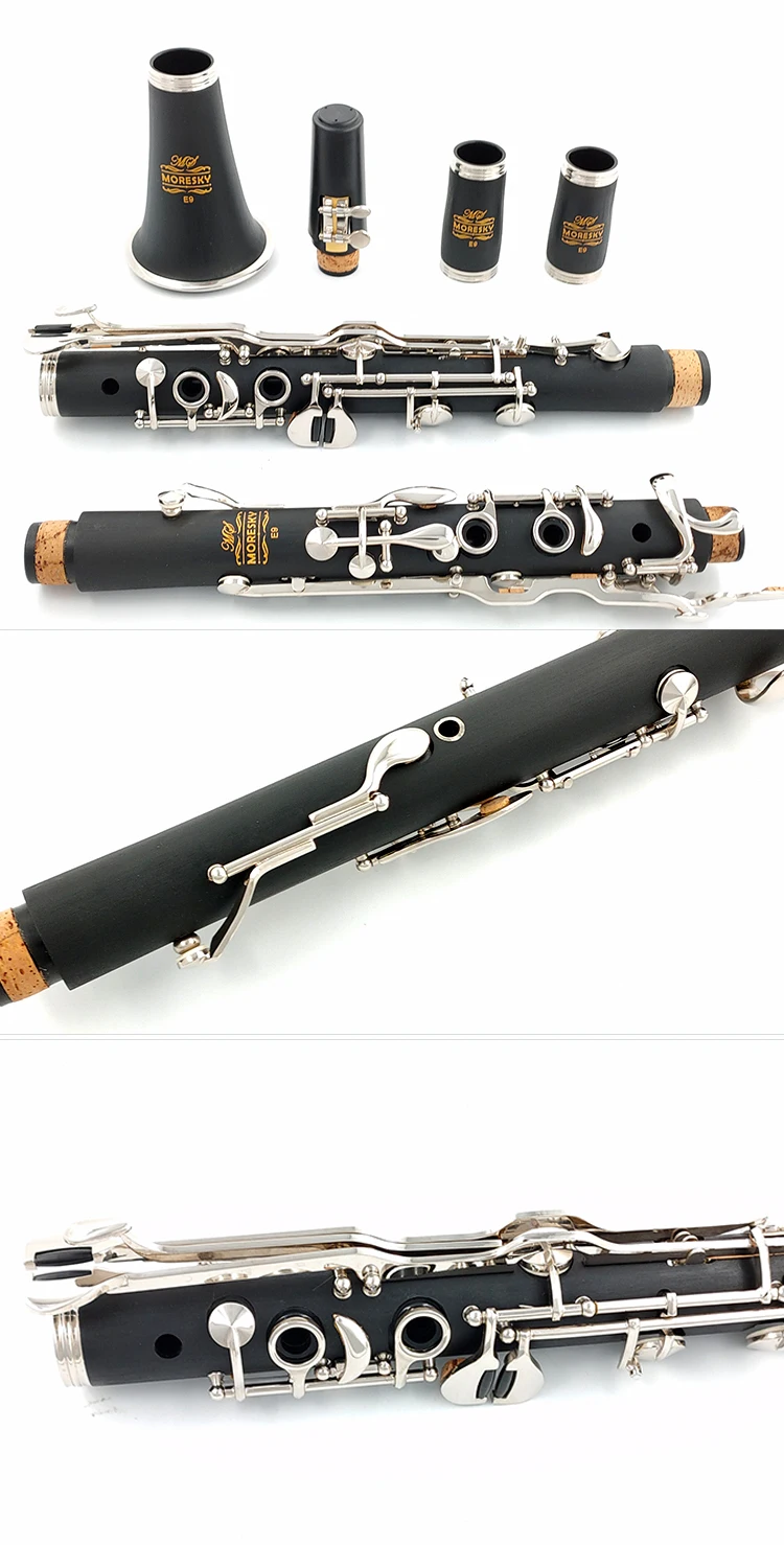 1. С марта 1. Модель 18 ключ кларнет меняется на E9 (старая модель E901). Он просто изменил модель, и сам инструмент совсем не изменился. 2. Каждая партия ключей Кларнет может иметь различные формы. Чистая ткань, смазочный крем и небольшая отвертка поставляются случайным образом. Посылка: Кларнет * 1 Холщовая Сумка * 1 Смазочное масло * 1 Маленькая отвертка * 1 Чистка * l Рид * 10