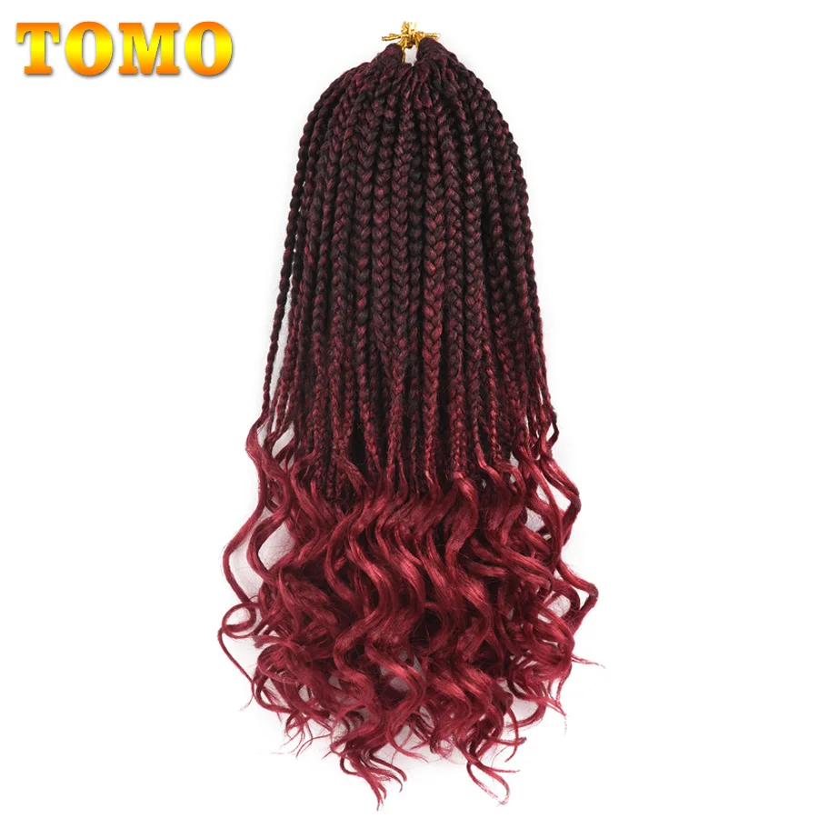 TOMO 14 18 24 дюйма вязанные волосы в коробке косички кудрявые концы Омбре синтетические волосы для косички 22 пряди плетение наращивание волос