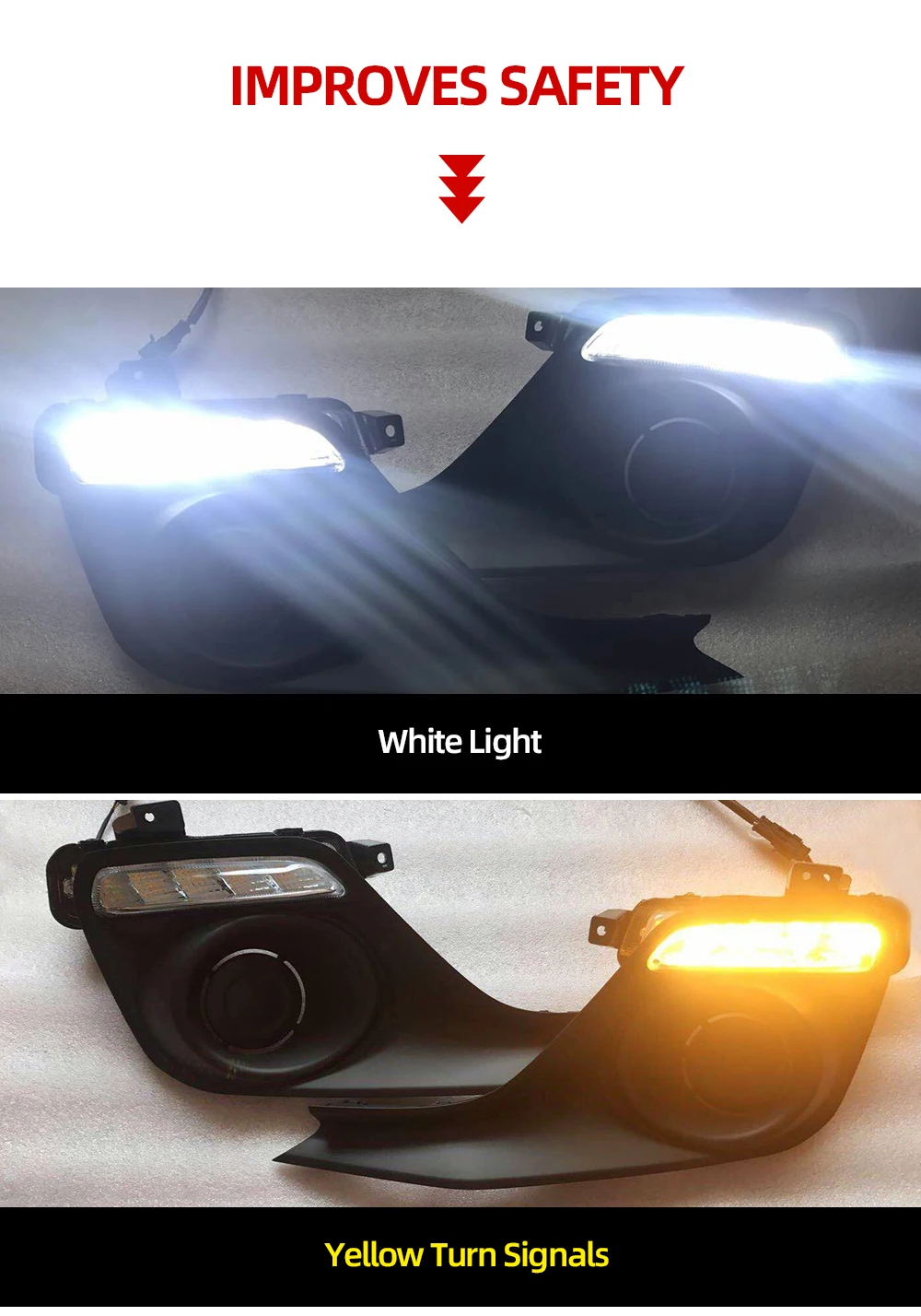 Белый и желтый имеет две функции: DRL и поворотники.