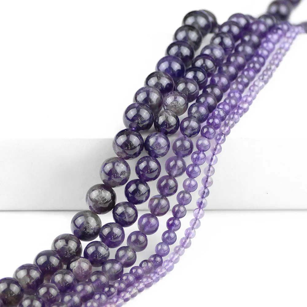 Бусины Из Натурального фиолетового хрусталя Bead4/6/8/10/12 мм, фиолетовые круглые бусины для изготовления ювелирных браслетов, аксессуары для DIY