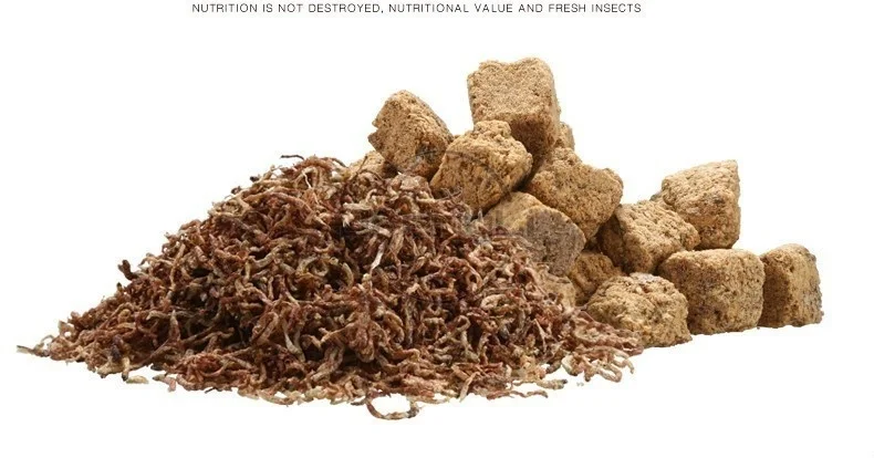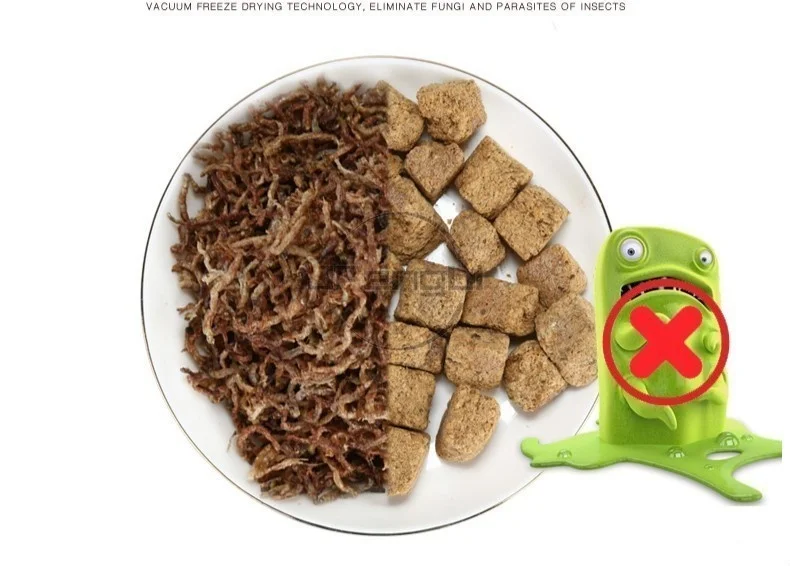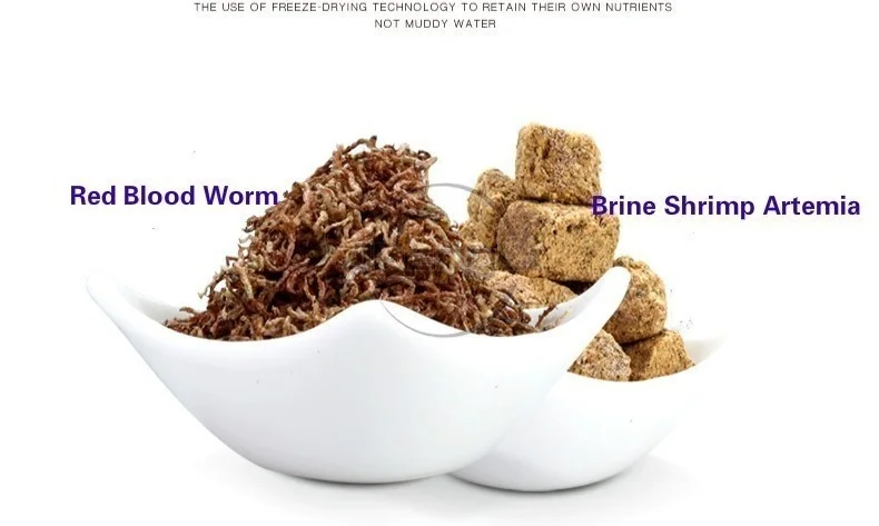 Нет риска заболевания по сравнению с живыми красными личинами комаров и меньше загрязнения воды, чем при использовании замороженных продуктов.