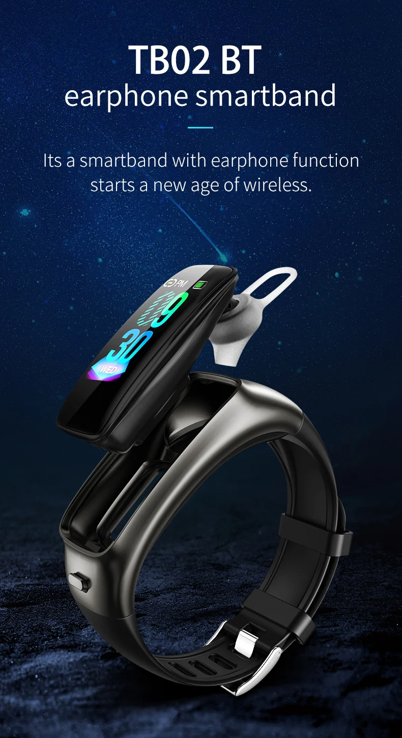 TB02 умный Браслет BT ответ наушники 2 в 1 беспроводная гарнитура шумоподавление пульсометр IP67 водонепроницаемый