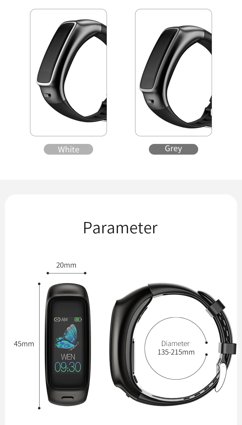 0,96 дюймовый HD IPS цветной экран Часы/шаг/калории/расстояние могут быть отображены на одной странице для легкого чтения. Три разных дизайна пользовательского интерфейса для циферблата, показанного на экране. BT 4,0 (низкое энергопотребление) Удобный ремешок из ТПУ Встроенный аккумулятор емкостью 100 мАч, время работы около 5-7 дней. Срок службы водонепроницаемый и пыленепроницаемый (вы можете носить его при мытье рук или под дождем, но не подходит для купания. Горячая вода и соленая вода запрещены.) Поддержка IOS 8,0 версии выше и Android 4,4 версии выше Способ зарядки: тип застежки для зарядки (USB интерфейс) Язык поддержки приложения: английский, французский, немецкий, итальянский, русский, испанский, корейский, японский, португальский, арабский. Приложение для этих часов является удобным для пользователя, совместимо с XIAOMI HUAWEI SAMSUNG IPHONE и т. Д., очень легко подключить телефон и часы. Как только он подключен через BT с телефоном, время, дата, указанная на экране, будет синхронизирована.