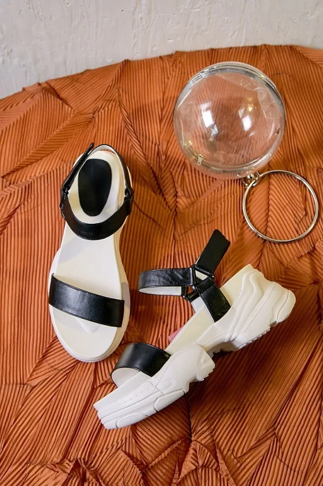 Босоножки на платформе из коровьей кожи; женская летняя модная обувь с ремешком на щиколотке; женская повседневная обувь на плоской подошве смешанных цветов; цвет черный, белый; D053
