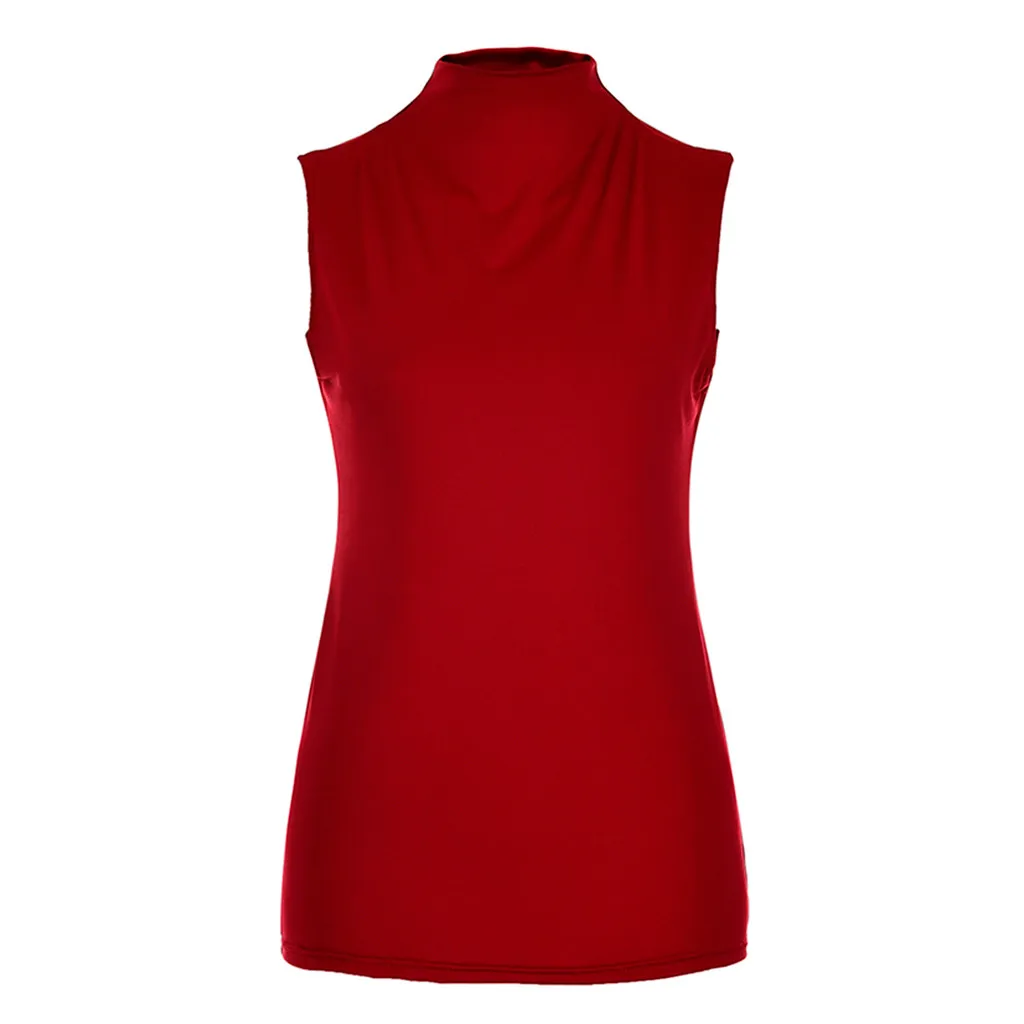Женская водолазка без рукавов, однотонная Повседневная Блузка, топ, футболка размера плюс