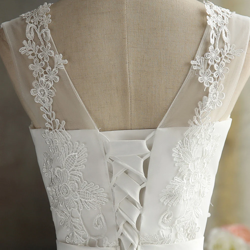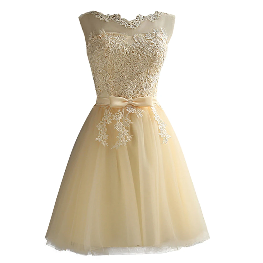 Это милое платье подружки невесты с изящным кружевным вышитым верхом и сетчатыми вставками, мягкими чашечками, завязками на шнуровке и застежкой-молнией сзади, облегающим лифом, проводной вставкой на талии, украшенный бант и юбка трапециевидной формы с многослойным тюлем.