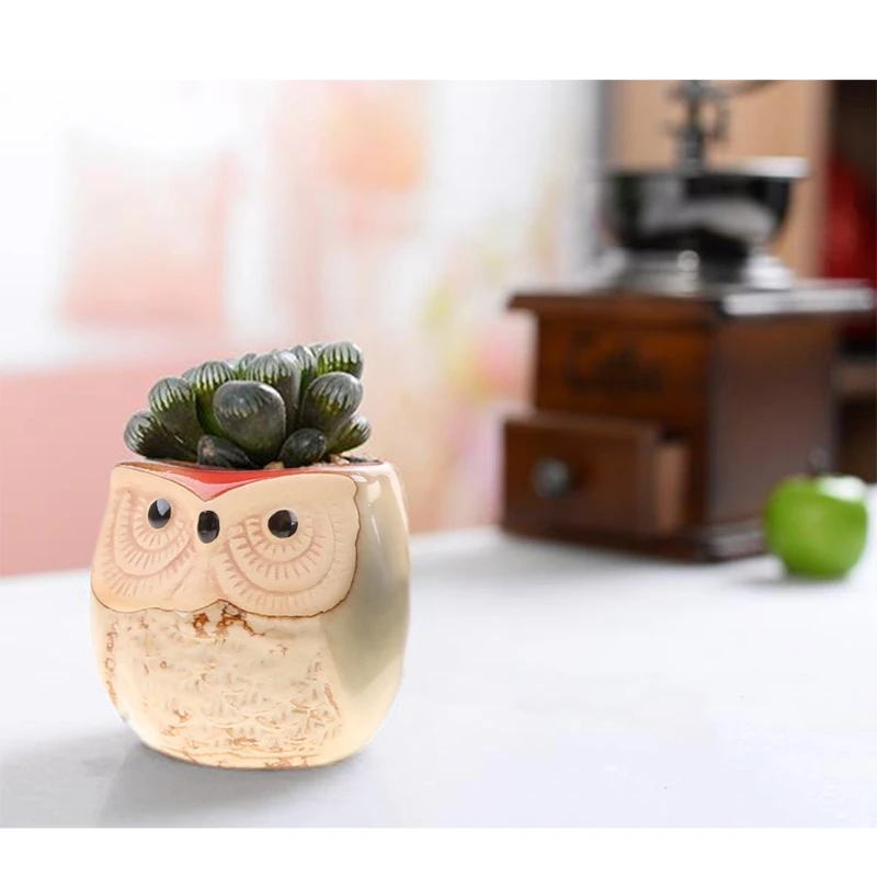 6 шт., керамический горшок для цветов в виде совы, серийный набор для цветов с проточной глазурью, керамический горшок для цветов цветочный горшок для рабочего стола, милый дизайн, горшок для суккулентов
