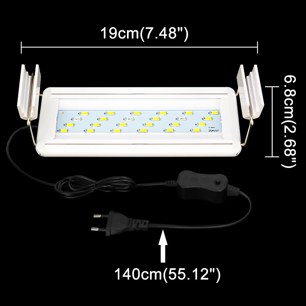 1. Регулируемые монтажные ножки обеспечивают гибкость в установке длины аквариума. 2. Свет аквариума не содержит УФ-лучей и не пропускает лучи для ваших растений и рыб. 3. Идеально подходит для роста рыбы и растений. Этот свет подходит для пресной воды. 4. Подходит как для аквариумов без оправы, так и для аквариумов в рамке.