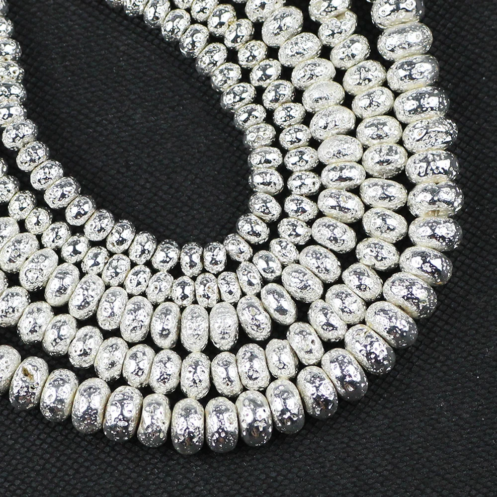Platinum Gold Natural Lava Rock Stone 6/8/10MM DIY Accessories Flat Round Loose beads for Jewelry Necklace bracelets making