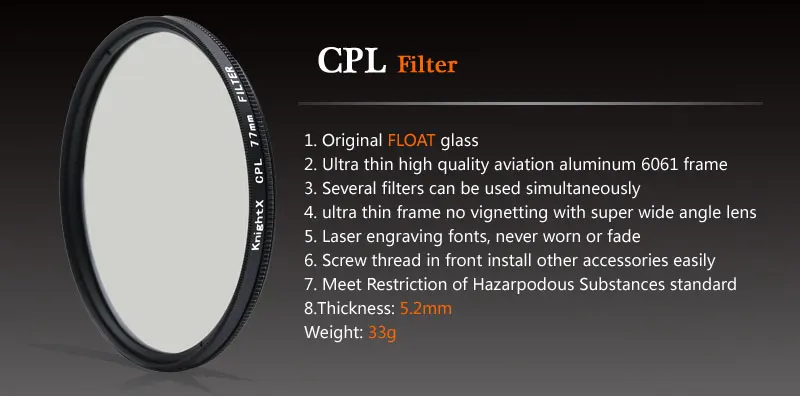 Удаляет нежелательные отражения от неметаллических поверхностей, таких как вода или стеклоУвеличивает цвет и контрастность путем уменьшения отражения от неметаллических поверхностей путем резкиУлучшает четкость удаленных объектовЛиства богаче, небеса bluerМатериал: оптический Стекло