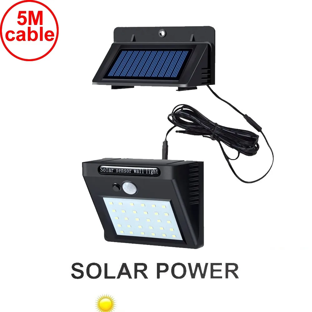 Новое поступление, интегрированный и раздельный монтаж, 30 светодиодов, Led 500 лм, супер яркий Солнечный свет с PIR + motion + cds, Ночной Датчик, солнечные садовые настенные светильники, лампа для внутреннего уличного двора, ландшафтный лагерь, дверь, гаражный забор и т. д. водонепроницаемый и пылезащитный, солнечная панель может разделиться с лампой и установить 5 м вдали от лампы