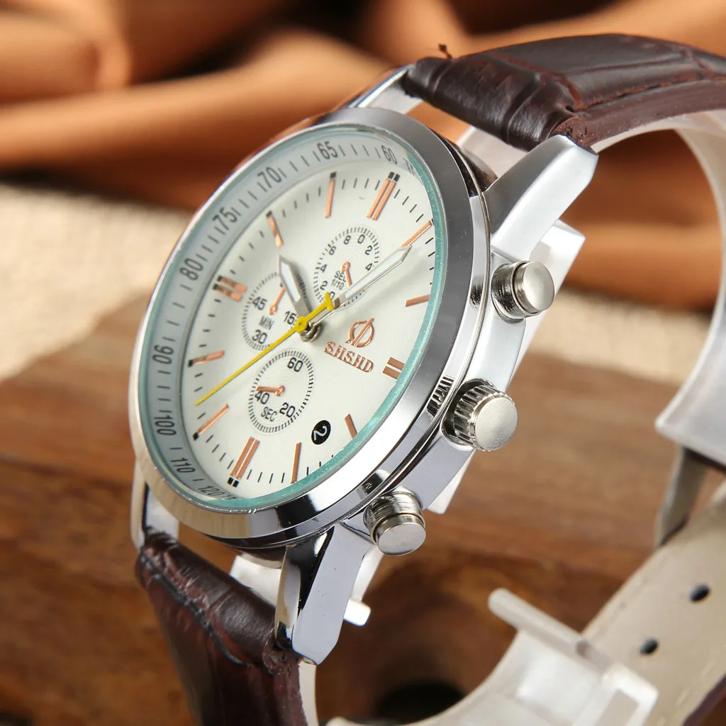 Модный темперамент три глаза шесть Pin Аналоговый кварцевый Кожаный ремешок для часов формальный бизнес досуг вечерние украшения подарок для мужчин