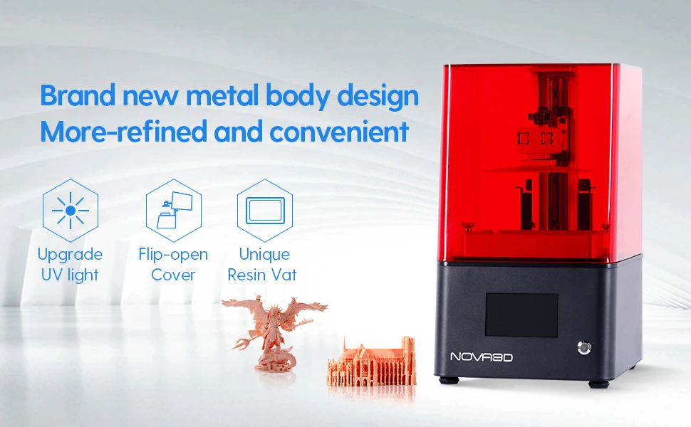Расширенный модуль источника УФ-Светильник обеспечивает точность на полной области печати и длительный срок службы ЖК-экрана 2K 2K ЖК-экран и FEP пленка-это модуль быстрого крепления, легко менять Слайсер и программное обеспечение управления печатью, чтобы один ПК управлял многими принтерами и контролировал процесс печати Wifi/USB/кабель все доступные 130 мм x 70 мм x 150 мм 4,3 дюйма IPS сенсорный экран, в режиме реального времени предварительный просмотр статус печати Выравнивания Без регулировки Овощерезка Саморазработанный слайсер NOVAMAKER Имеет функцию автоматического размещения, перетаскивания модели, просмотра изображения модели в любое время, автоматической конфигурации оборудования, автоматической поддержки зонта, сетевого подключения и дистанционного управления Поддержка может быть добавлена клиентом или автоматически Печать Экран 2560*1440(2K) ЖК-экран дает очень точные детали печати до нескольких микрометров Модель может быть напечатана в очень тонких деталях из-за маскирующего экрана с разрешением 2K Меры предосторожности 1. Избегайте прямого контакта с кожей при обработке смолы. Промыть большим количеством воды, если контакт случайно. 2. Вылейте смолы обратно из резервуара в бутылку для хранения, если принтер не будет использоваться в течение 2 дней. 3. Убедитесь, что нет твердых остатков от последних принтов при запуске новых принтов. 4. Используйте Ткань для очистки НДС при замене смолы. 5. Печатные предметы могут быть дополнительно закалены под источником солнечного света или УФ-светильник. Технические данные Поддержка системы Windows/MAC Экран 4,3 дюймов сенсорный экран Экран Ломтерезка для программное обеспечение novamaker Подключение Wifi/USB/кабель Печать Технология ЖК-дисплей Светильник-Источник УФ интегрированный светильник (длина волны 405нм) Точность (XY) 47,25 мкм Толщина (Z) 25 ~ 100 мкм Максимальная скорость печати 30 мм/ч Физических параметров Размер принтера 130 мм * 70 мм * 150 мм Материал печати 405нм фоточувствительная смола N. W 7,3 кг G. W 8,6 кг