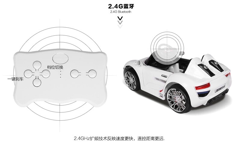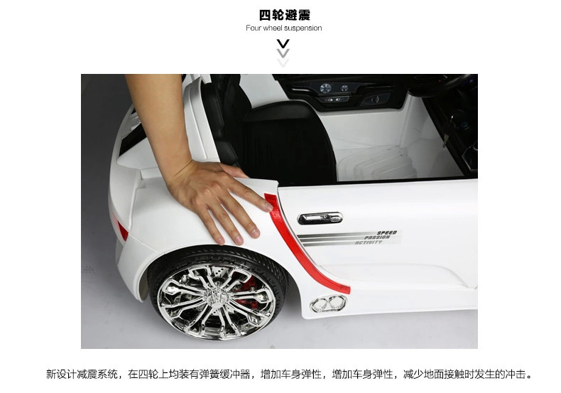 Четырехколесный привод + Функция качания + пятиточечный ремень безопасности + сиденье из мягкой кожи + большая батарея 12V7A + пульт дистанционного управления + музыка + пластиковое колесо + лак