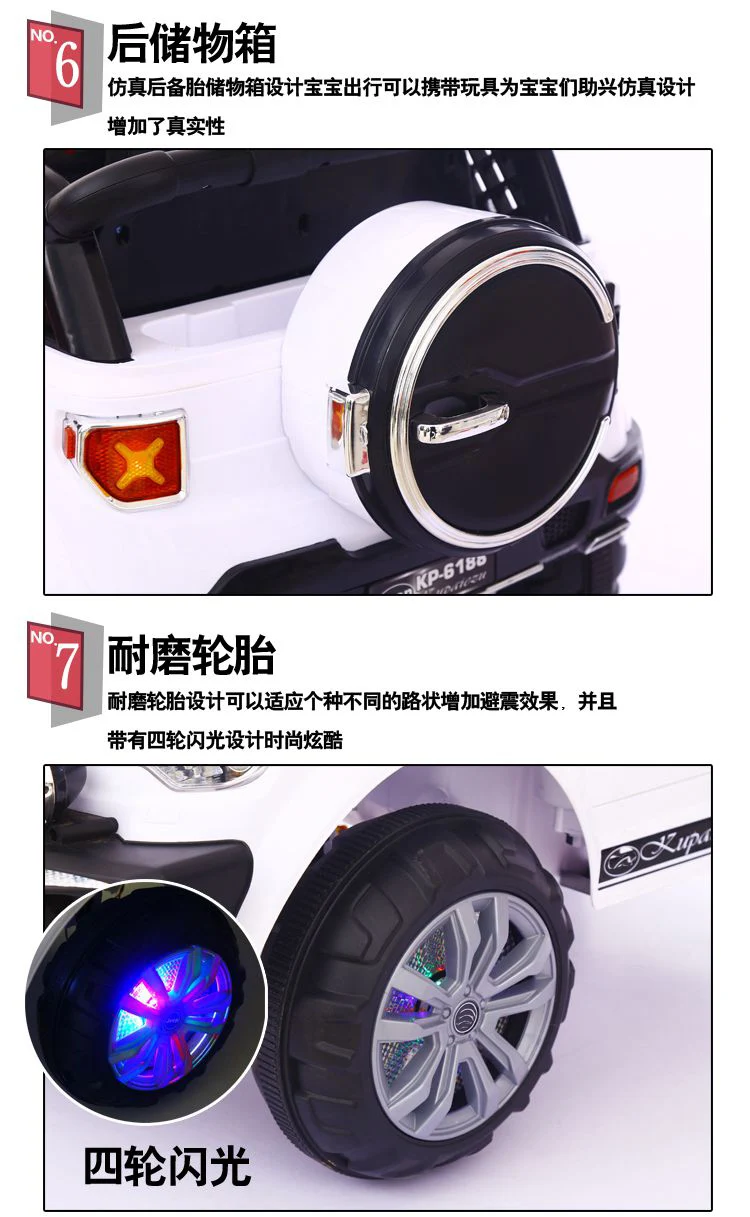 Четырехколесный привод + Функция качания + ремень безопасности + сиденье из мягкой кожи + большая батарея 12V7A + пульт дистанционного управления + музыка + пластиковый светильник