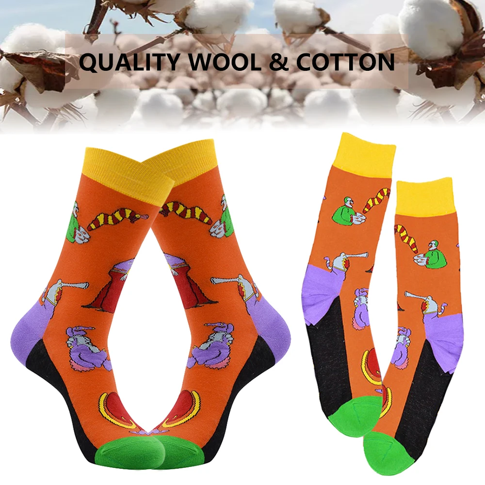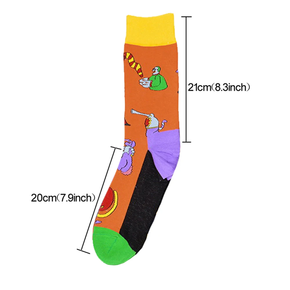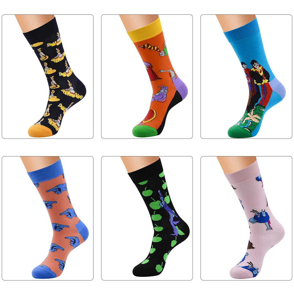 1/5, 6 штук в партии, мужская одежда носки с персонажами из мультфильмов нескользящих носочков с прикольными красочные узорные тренировочные-чесаный хлопок стеганые чулки