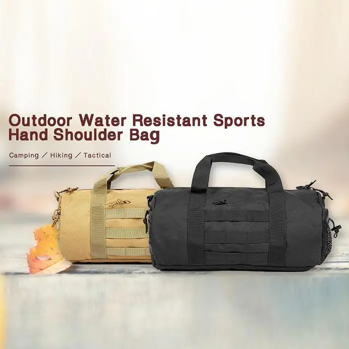 Material: Oxford cloth Color: Khaki, Black Size: 20cm x 20cm x 40cm Pattern: Solid Decor: Zipper Open/Close Type: Zipper Occasion: Outdoor Gender: Unisex Features: This product is vintage design and multifunctional, with lots of pockets. Plenty of room design for carrying your essential items. Versatile bag is durable and water resistant. It designed as a outdoor bag. It's fashion, creative, is a very useful accessory brighten up your look. Package Content: 1 x Outdoor Sports Bag Note: Due to the difference between different monitors, the picture may not reflect the actual color of the item.(1cm=0.3937inch)