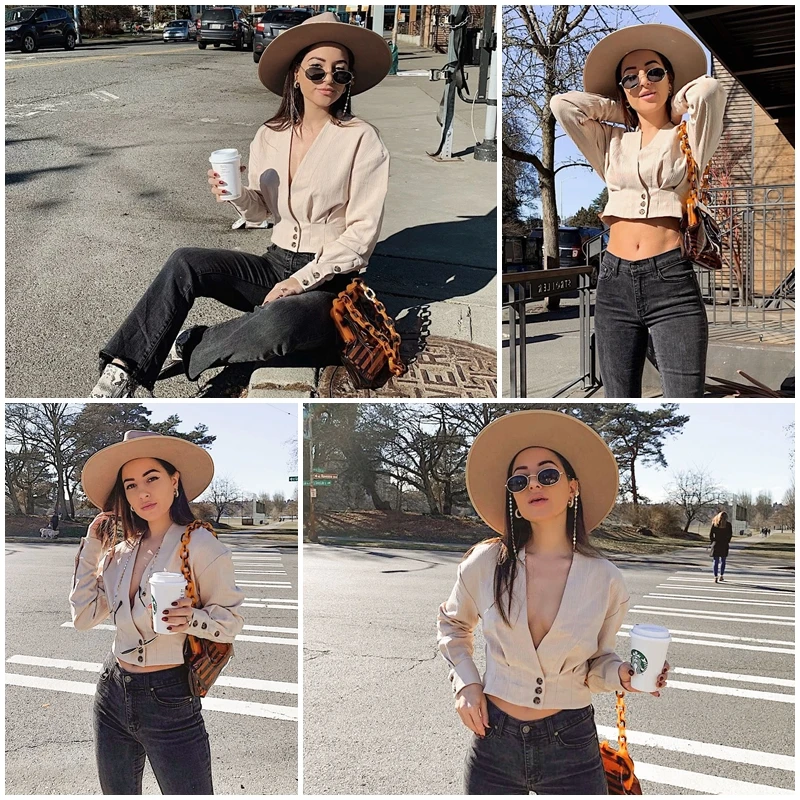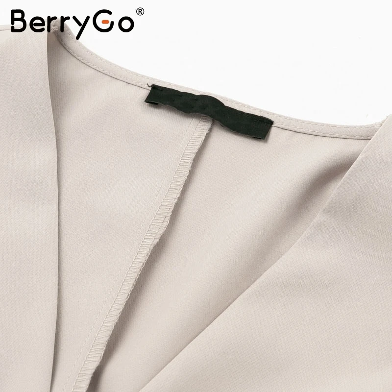 BerryGo Elegant v neck blouse shirt women Long sleeve buttons female short tops shirts Casual streetwear autumn ladies blouses
