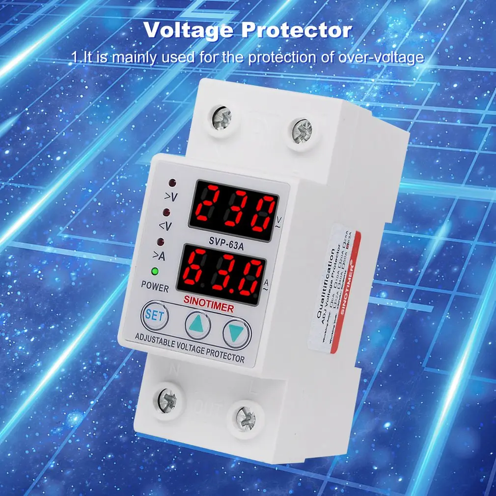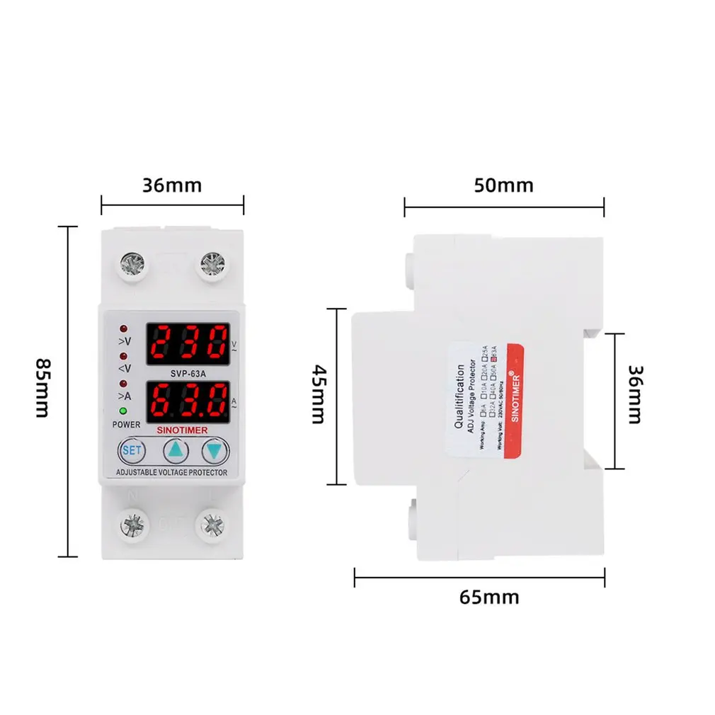 SINOTIMER SVP-63A 230В 63А Регулируемый автоматический Восстанавливающий протектор под/над напряжением релейный выключатель защитное устройство с светодиодный