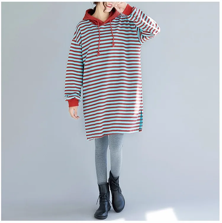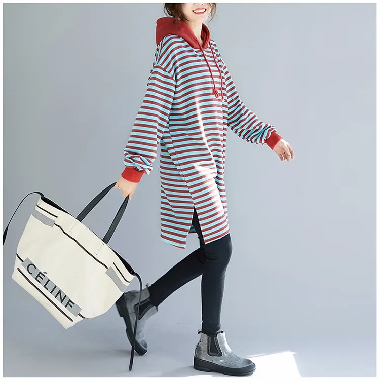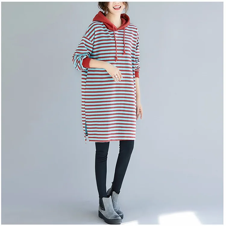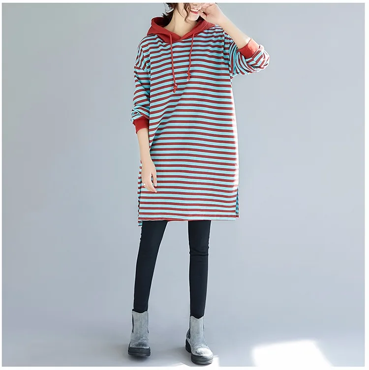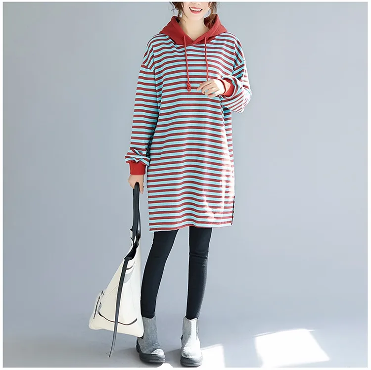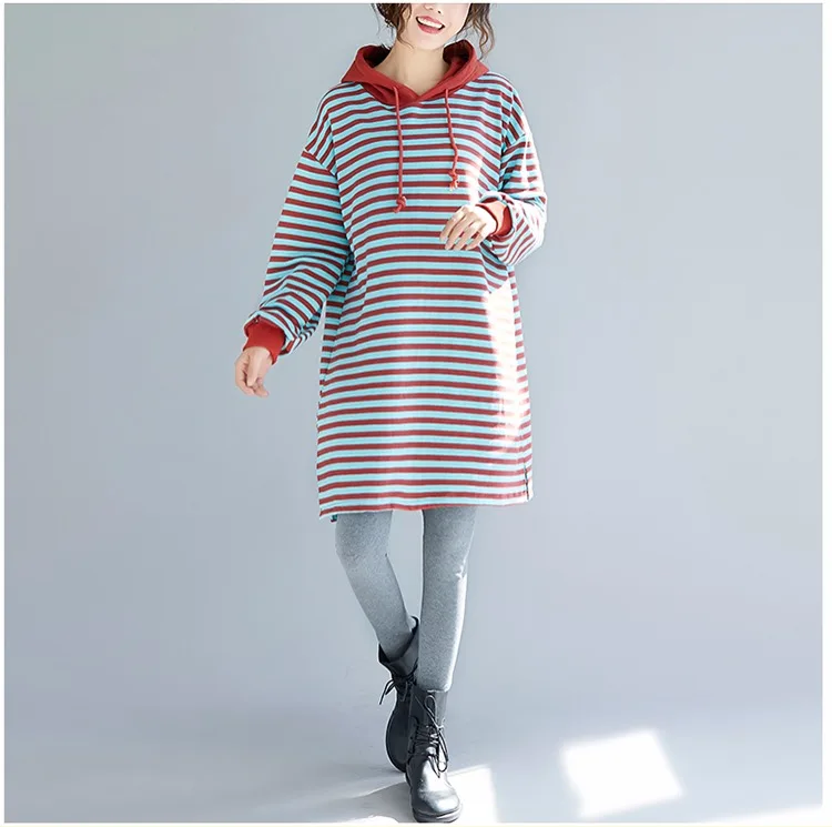 Женская футболка с капюшоном в Корейском стиле, полосатая футболка размера плюс, Повседневная летняя футболка в стиле пэчворк, новинка 2019