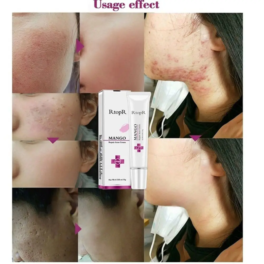 Название: восстанавливающий крем от акне Бренд: rtopr Вес нетто: 0.53fl.oz/15g Особенности: подходит для различных типов кожи, особенно для кожи от акне. Посылка включает в себя: 1 шт. крем для удаления акне Характеристики продукта: чистые натуральные растительные экстракты, увлажняет и осветляет кожу, уравновешивает секрецию масла, удаляет пятна от акне, акне, сужает поры и восстанавливает кожу. Способ применения: После очищения кожи нанесите соответствующее количество этого продукта равномерно на область акне, мягко массируйте некоторое время, рекомендуется использовать 2-3 раза в день. Примечание: Если у вас есть дискомфорт кожи, пожалуйста, прекратите использовать его. Состояние хранения: пожалуйста, поместите в прохладное место и Избегайте прямых солнечных лучей.