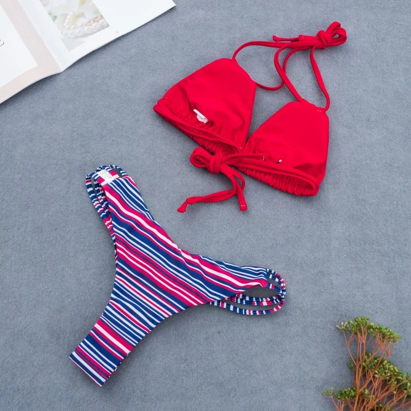 Женский купальник с пуш-ап, купальник-бикини в полоску, пляжный костюм, 2019