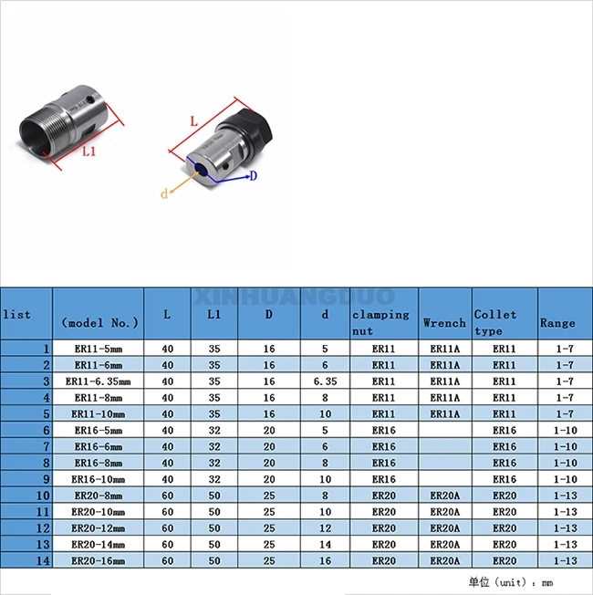 Тип: гайка ER11A, наружная шестиугольная гайка 19 мм максимальный общий диаметр